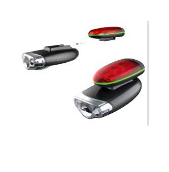 Zestaw Bike Light składa się z dwóch części: oświetlenia przedniego z główną diodą LED oraz dwiema, zwiększającymi widoczność, diodami bocznymi. Lampka jest wodoodporna, czas działania w maksymalnym trybie świecenia wynosi 12 godzin, a parametry jasności w trybie maksymalnym, to 35 Lumenów. Oświetlenie tylne – także wodoodporne, jest jednocześnie odporne na upadki, działa 30 godzin. Do każdego zestawu dołączone są baterie AA oraz AAA niezbędne do działania lampek.